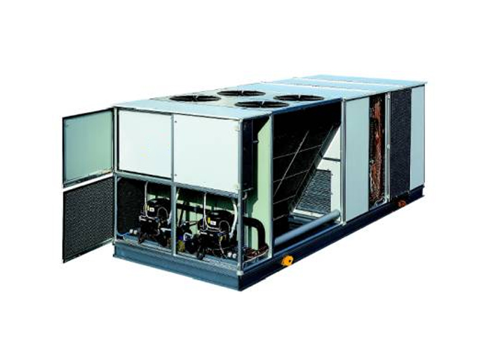屋顶式空调机组是一种自带冷源的大中型整体空调设备,其制冷、加热、加湿、送风、空气净化、电气控制等组装于卧式箱体中。根据机组使用场所环境的具体要求,机组可做防爆、防腐蚀等处理措施,无需冷却水及制冷水系统,省了冷却塔、冷却水泵、制冷水泵和相应管路、部分电控装置,广泛适用于不便安装水路系统和水资源缺乏地区的大、中型厂房、车间的温、湿度及洁净度等参数的调节。